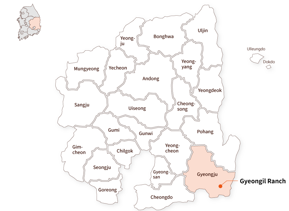 The Gyeongju headquarters in Gyeongsangbuk-do operates 11 cooperative ranches,